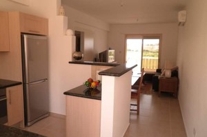 This is an apartment in Mandria, Paphos.It has an open plan kitchen with living room and two bedrooms, a bathroom and a swimming pool. It is situated in a complex in Mandria with gardens.