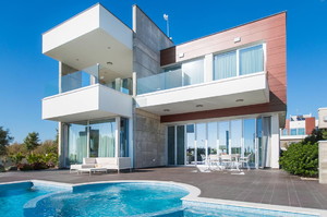 A modern holiday villa for rent in Ayia Napa, a popular vacation area in Cyprus. Plush interiors with modern comforts. Wide outdoor spaces and unobstructed views of the blue Mediterranean Sea. Perfect for a private holiday experience on the island. Designed for maximum convenience and comfort.